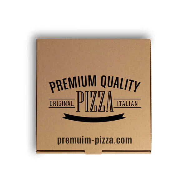 Personalised pizza boxes from PackGenie.co.uk can help enhance your brand experience, customers will be excited about your pizza arriving at the door so why not make it memorable with your very own custom printed pizza boxes, including offers and individual brand messaging. Lining your boxes with Custom greaseproof paper is also a great way to extent brand exposure turning a positive experience into dedicated customers. Customised Pizza Boxes are available in Eco Brown or white kraft / white inside E Flute cardboard.