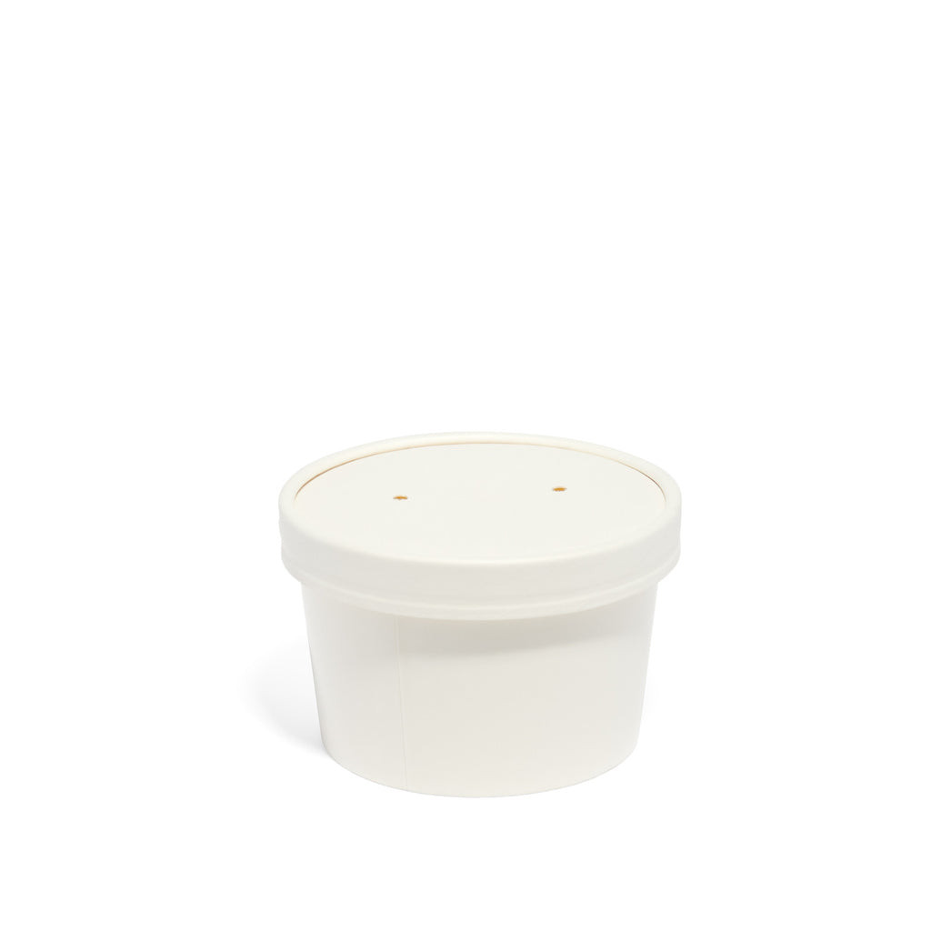 Serve your food-to-go in these practical and stylish white soup containers. These containers are made from sustainably sourced paperboard and are fully recyclable.