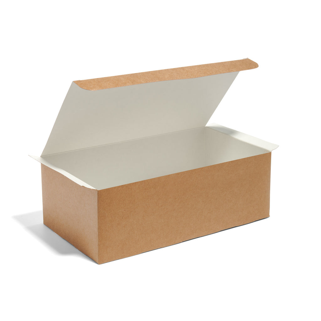 Serve your food-to-go in these practical and environmentally friendly large kraft clamshells. These burger boxes are made from sustainably sourced paperboard and are both compostable and recyclable.